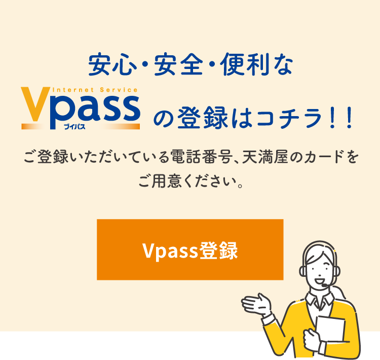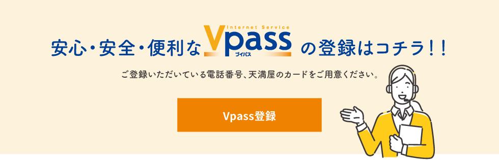 天満屋カードはセキュリティ強化に伴い、ネットショッピングでカード決済の際には「天満屋カードVpass」への登録と、ご自身のメールアドレスの登録が必要となります。 |